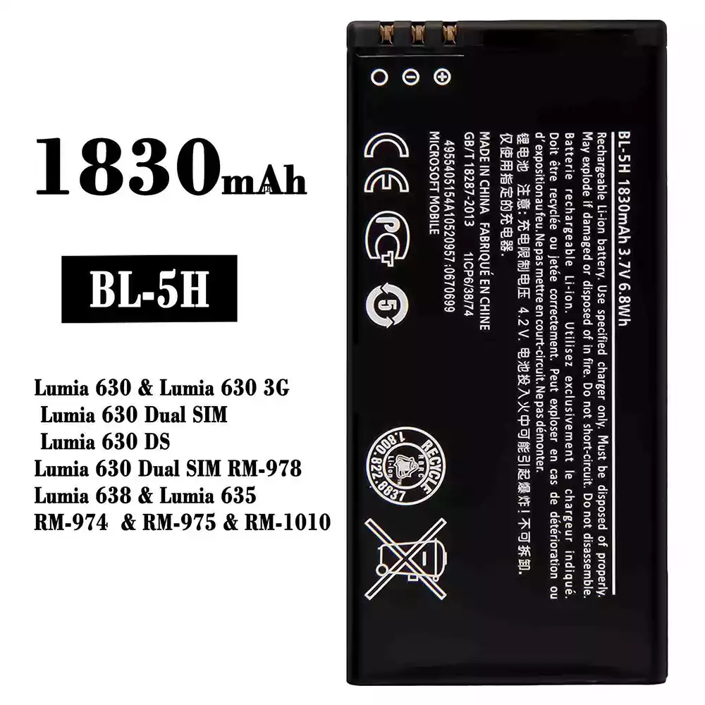 Bateria BL-5H para Nokia Lumia 630 / Lumia 630 3G / Lumia 630 Dual SIM / Lumia 630 DS / Lumia 630 Dual SIM RM-978 / Lumia 638 / Lumia 635 / RM-974 / RM-975 / RM-1010