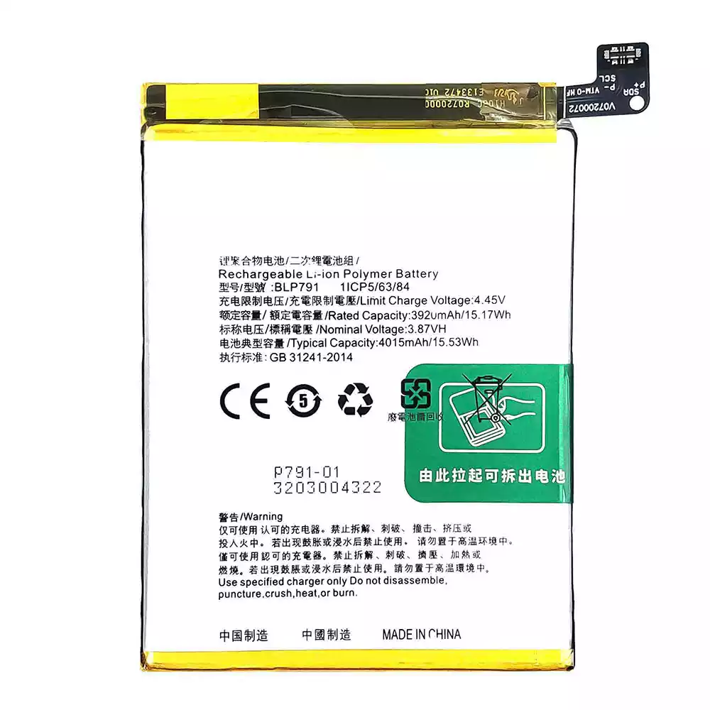 Bateria BLP791 para OPPO Reno 4 4G /Reno4 Lite /F17 /A73 4G