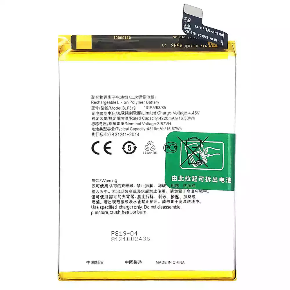 Bateria BLP819 para OPPO Reno 5 4G /Reno 6 4G /F19 Pro Plus /Reno 5 Lite /Reno 5Z