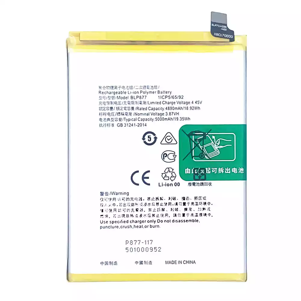 Bateria BLP877 para OPPO Realme 8i / Realme C31 / Realme C30 / Realme Narzo 50I Prime / Realme C33 / Realme C30S / Realme 9i 5G / Realme Narzo 50A Prime