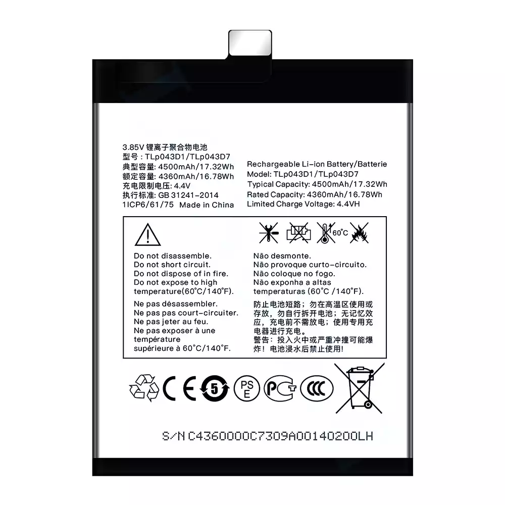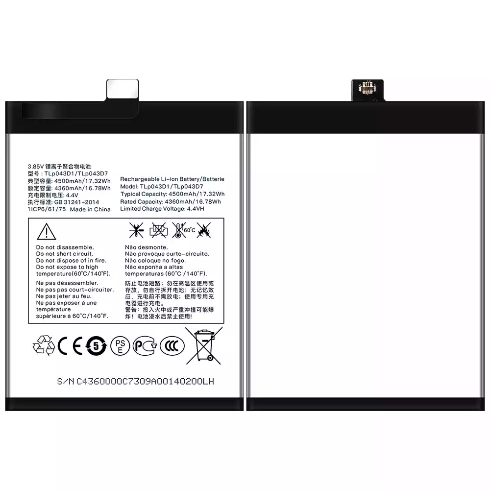 Bateria TLP043D1/TLP043D7 para Alcatel TCL 10 Plus/TCL 20 Plus/TCL 10 pro/TCL 20 pro